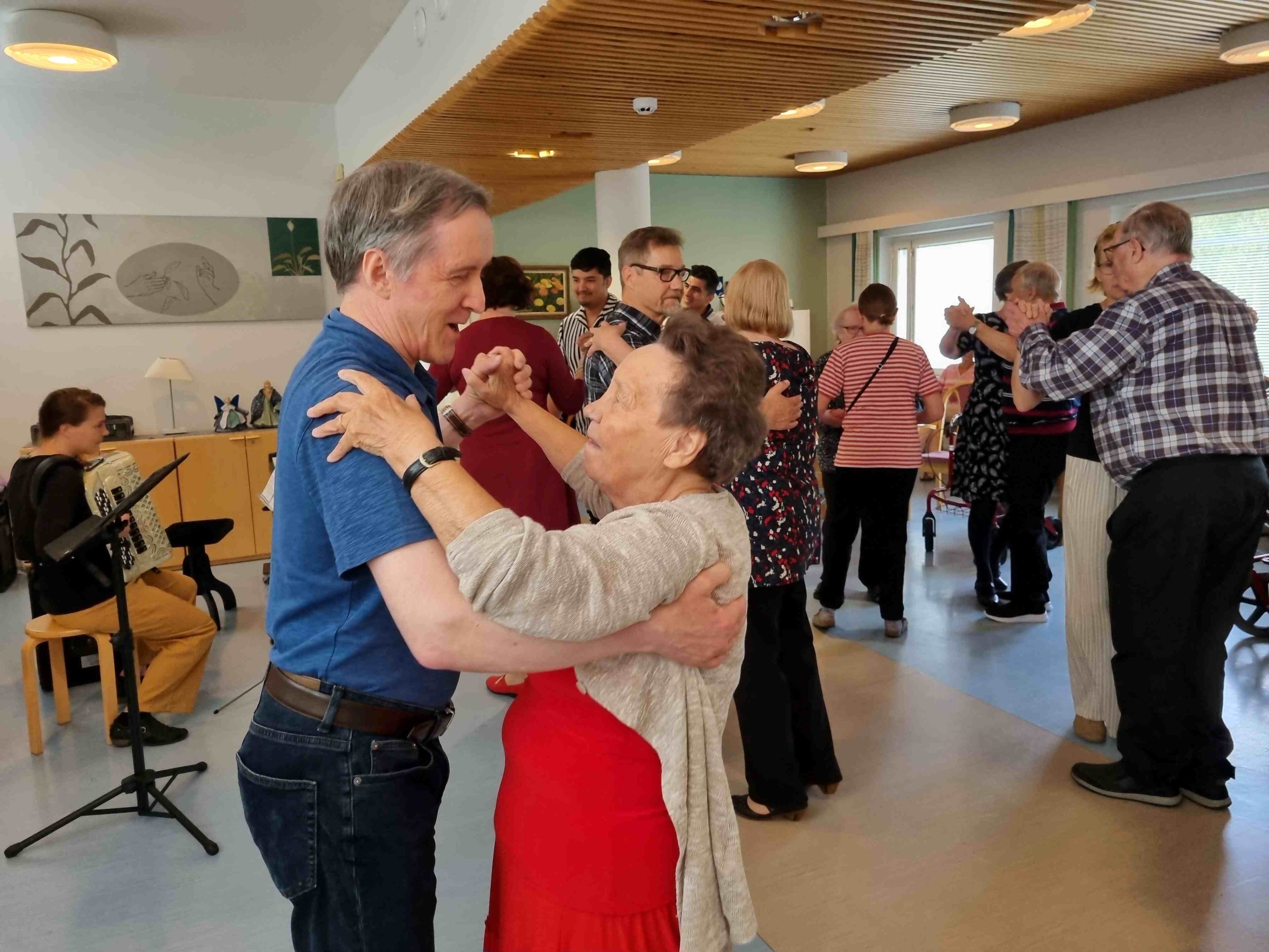 Seitsemän nastalaista oli maanantaina 25.8.2025 tanssittamassa Jokkakallion asumispalvelukeskuksen asiakkaita.