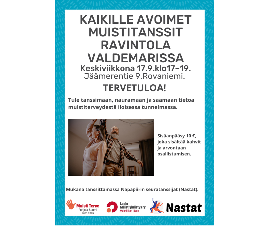Tilaisuuden järjestää Lapin Muistiyhdistys ja Muisti Terve Pohjois-Suomi. Napapiirin seuratanssijat on tilaisuudessa yhteistyökumppanina.