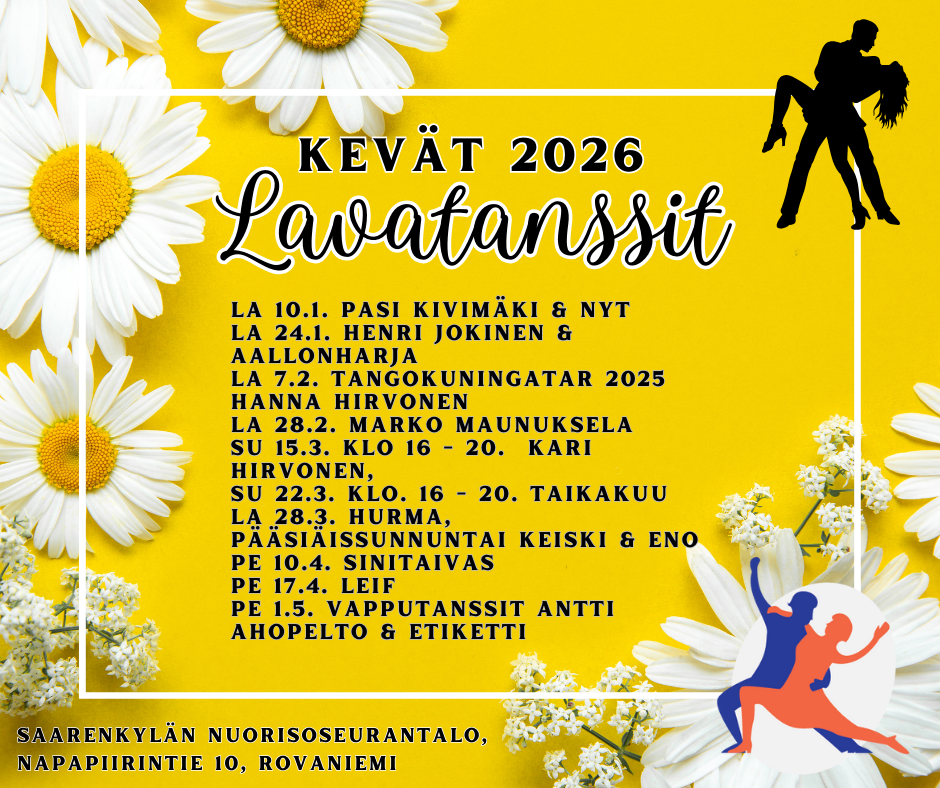 Kevätkauden 2026 orkesterit ja tanssien ajankohdat