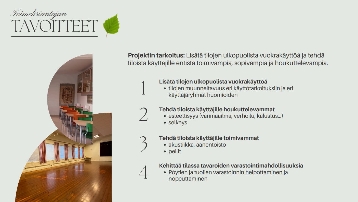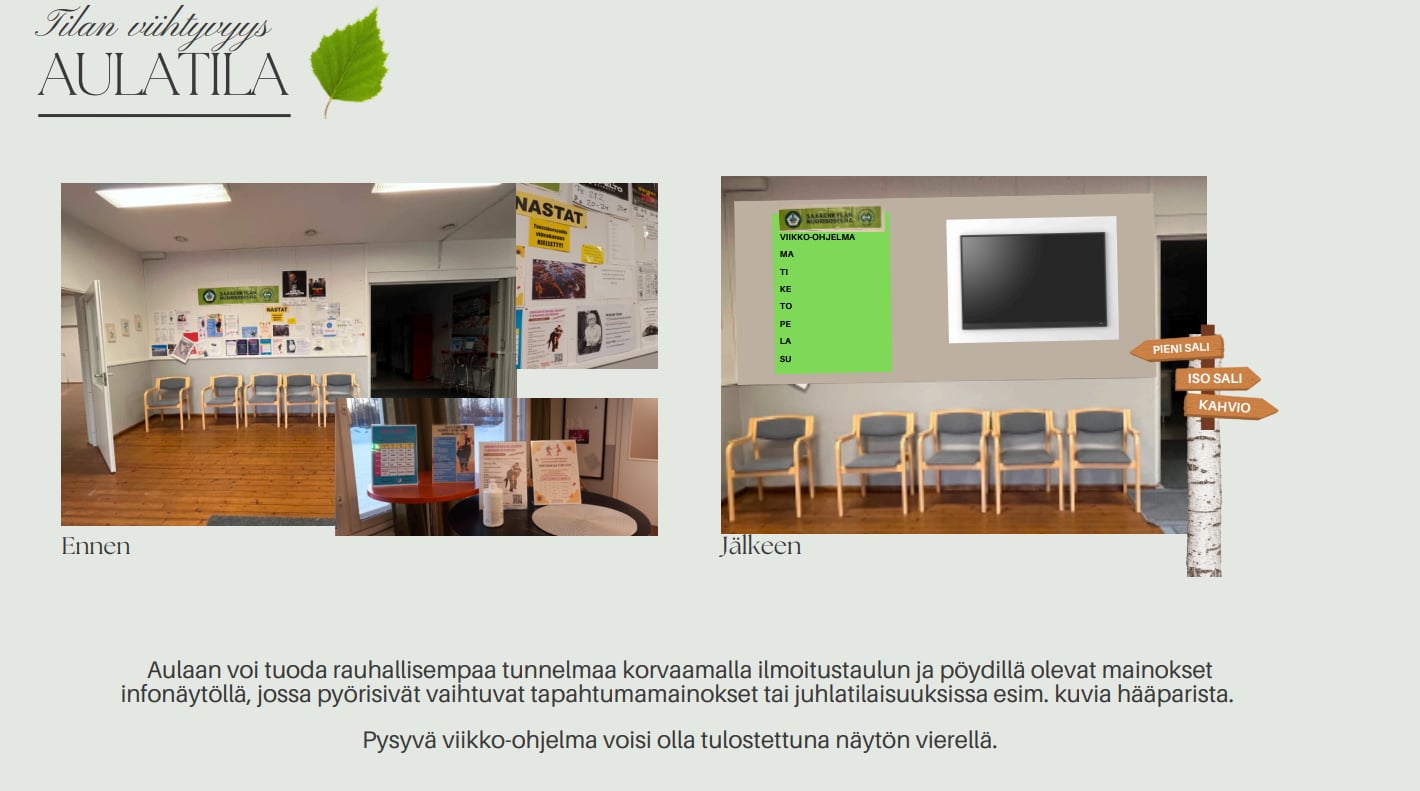 visuaalisuutta. Opiskelijat tekivät tilojen havainnointia ja haastatteluita käyttäjien