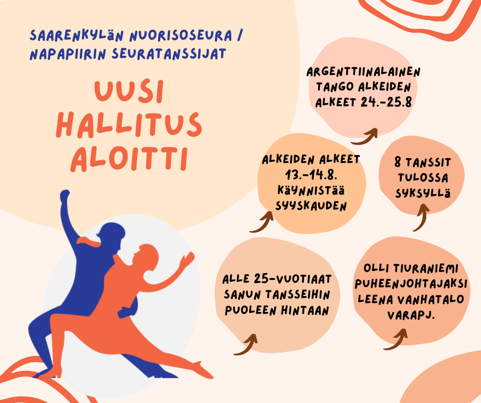 Saarenkylän nuorisoseura ry./Napapiirin seuratanssijat on valinnut hallituksen puheenjohtajaksi Olli Tiuraniemen ja varapuheenjohtajaksi Leena Vanhatalon.